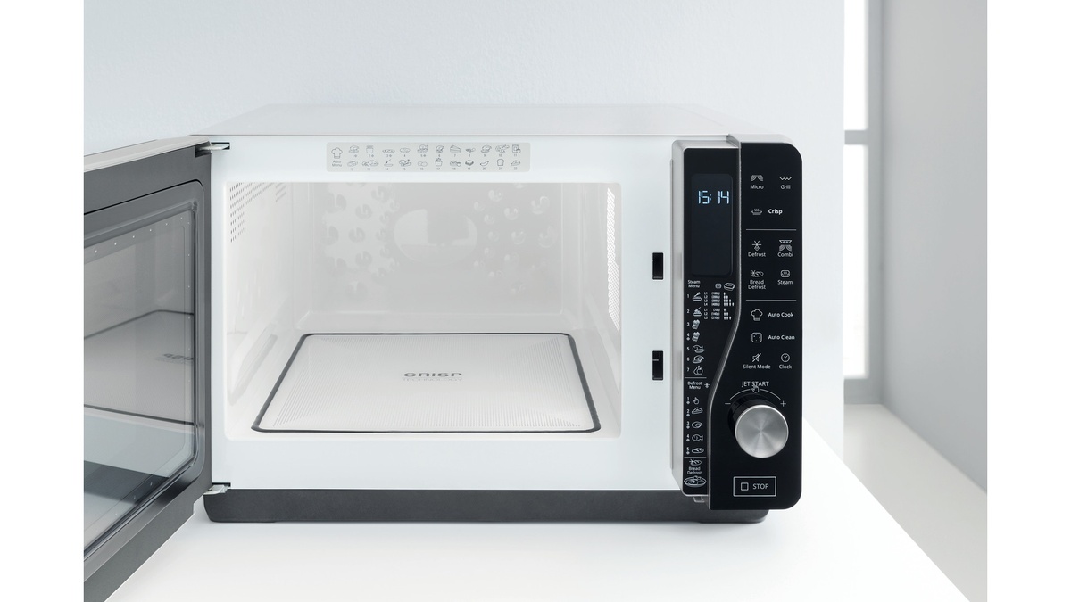 Semplicemente posizionando una ciotola d'acqua all'interno del microonde e selezionando la funzione Auto Clean, il potere naturale del vapore ammorbidirà i residui di cibo in pochi minuti, preparandoli per essere eliminati.
